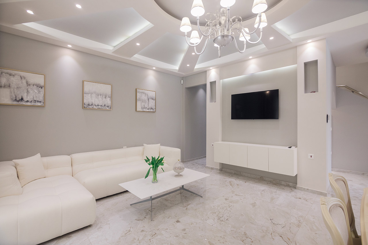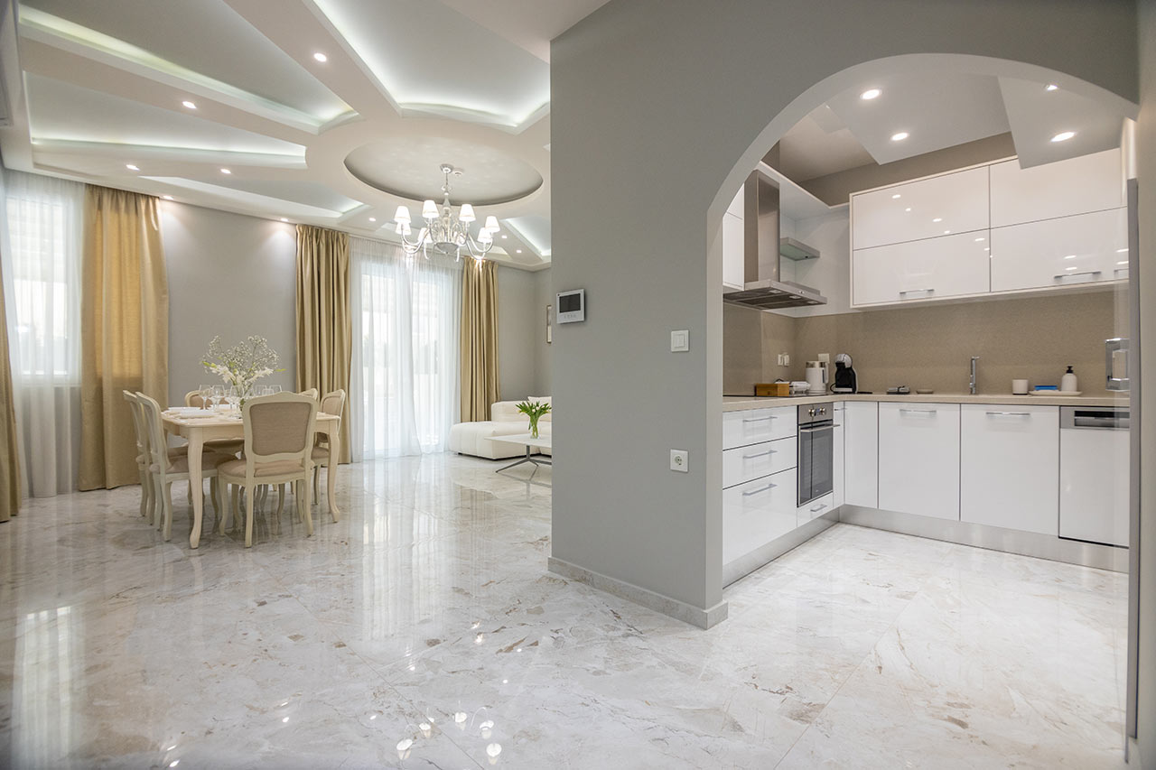 Мебель для столовой от Laura Ashley, большой диван и журнальный столик от греческого бренда. Спутниковое телевидение Выход на внутреннюю и внешнюю веранды.