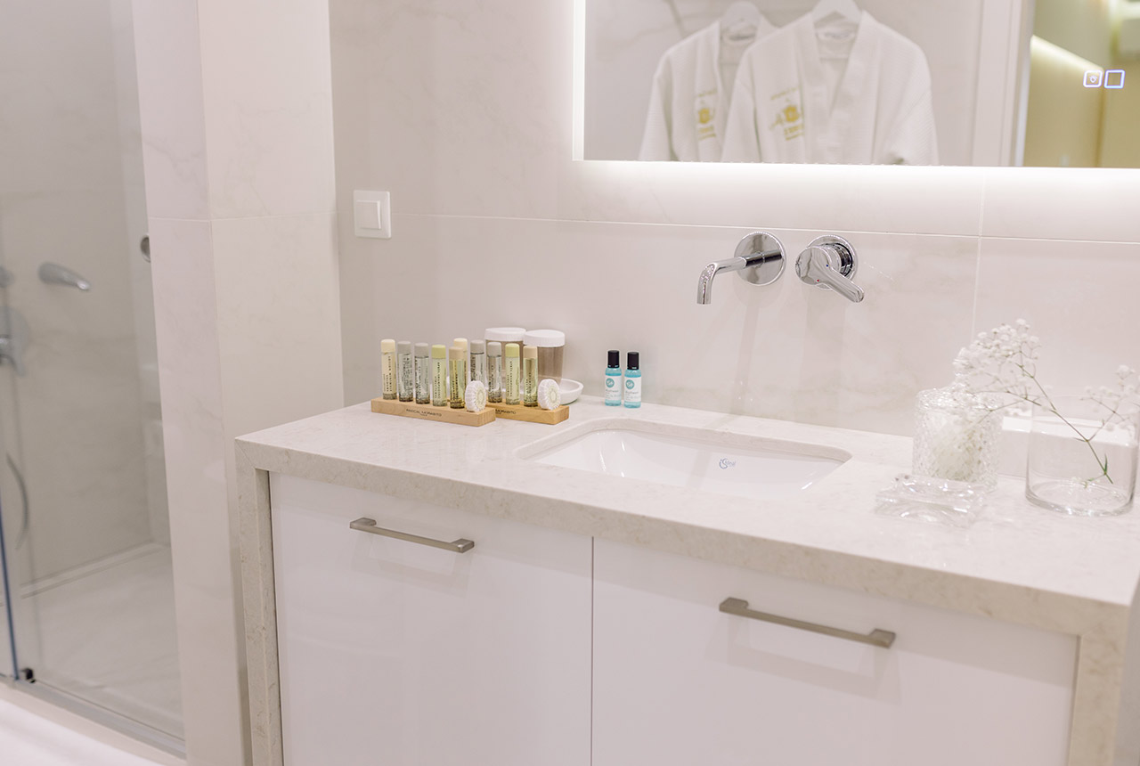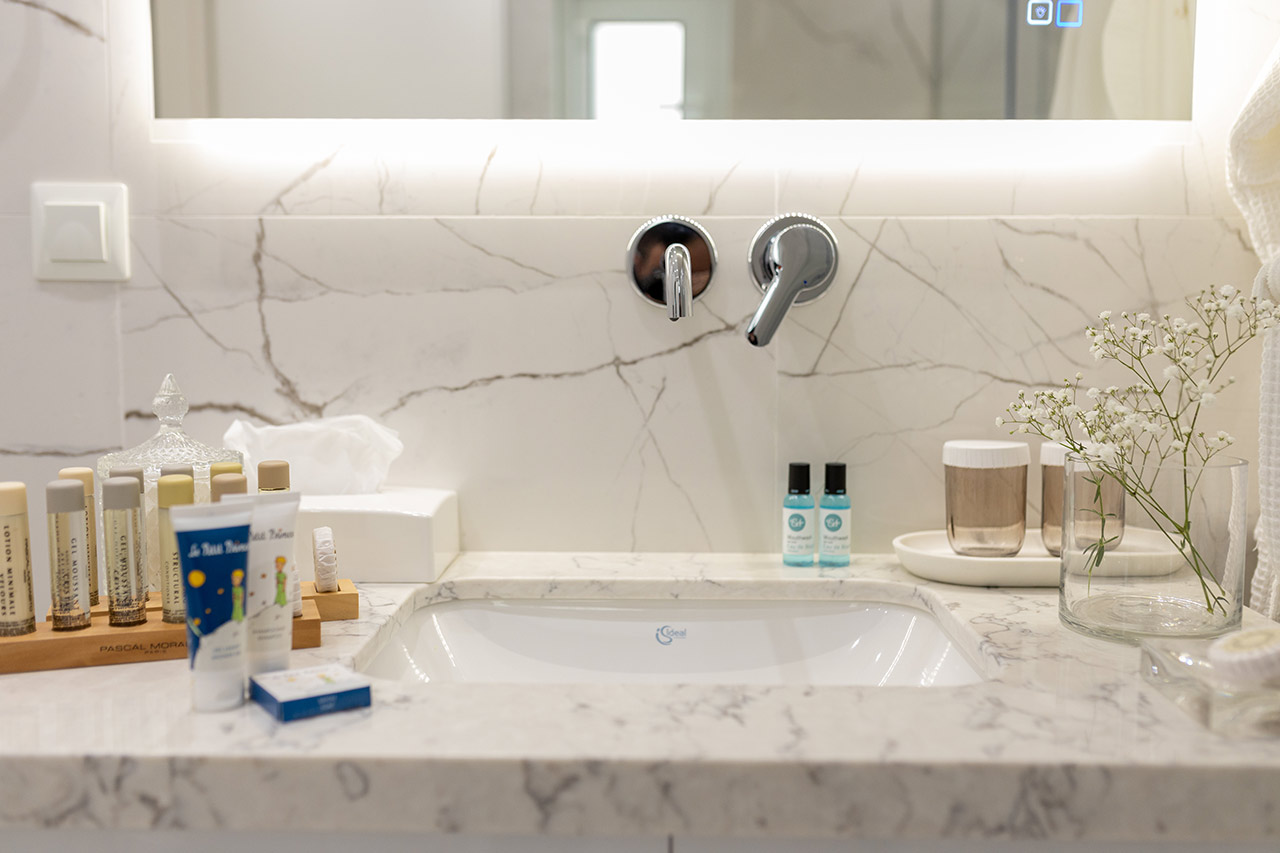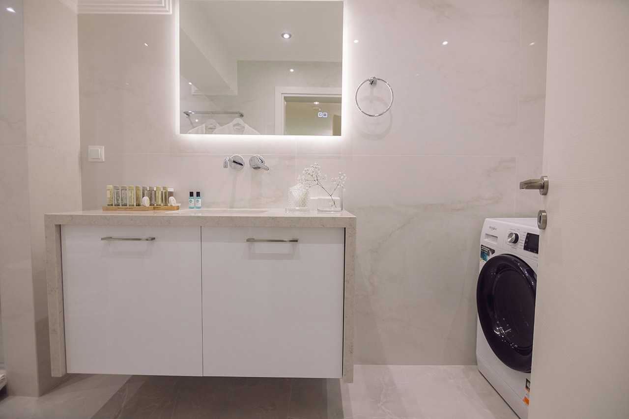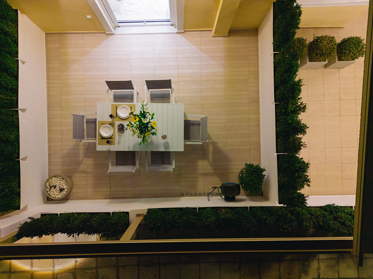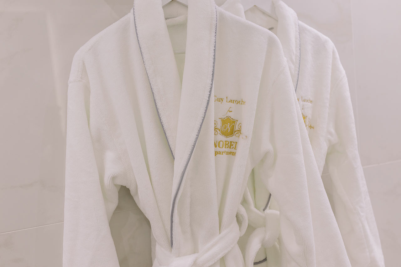 На втором этаже двухуровневой квартиры находится главная спальня, которая спроектирована с уважением к отдыху гостей. Кровать оснащена удобным матрасом и прикроватным освещением от Laura Ashley. + Высококачественное белье из 100% хлопка-сатина от Guy Laroche.