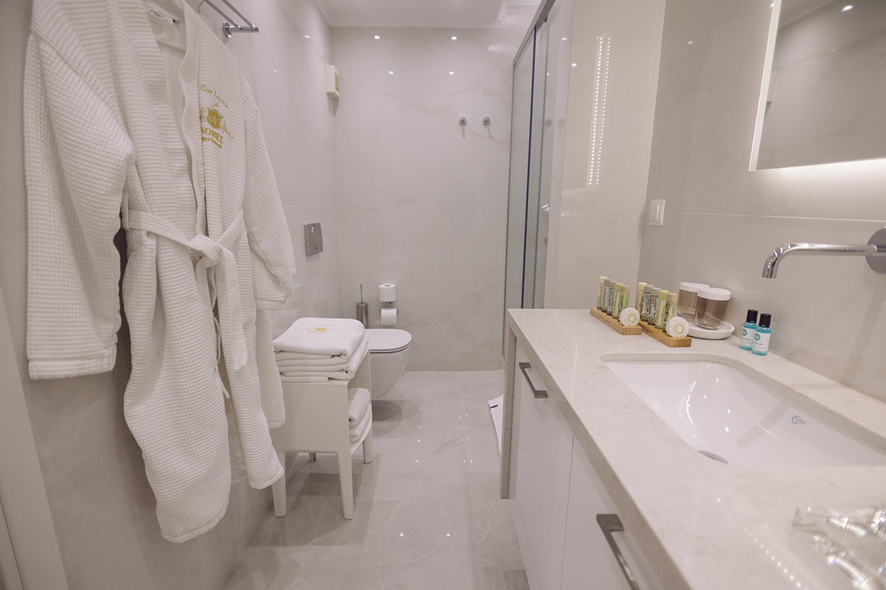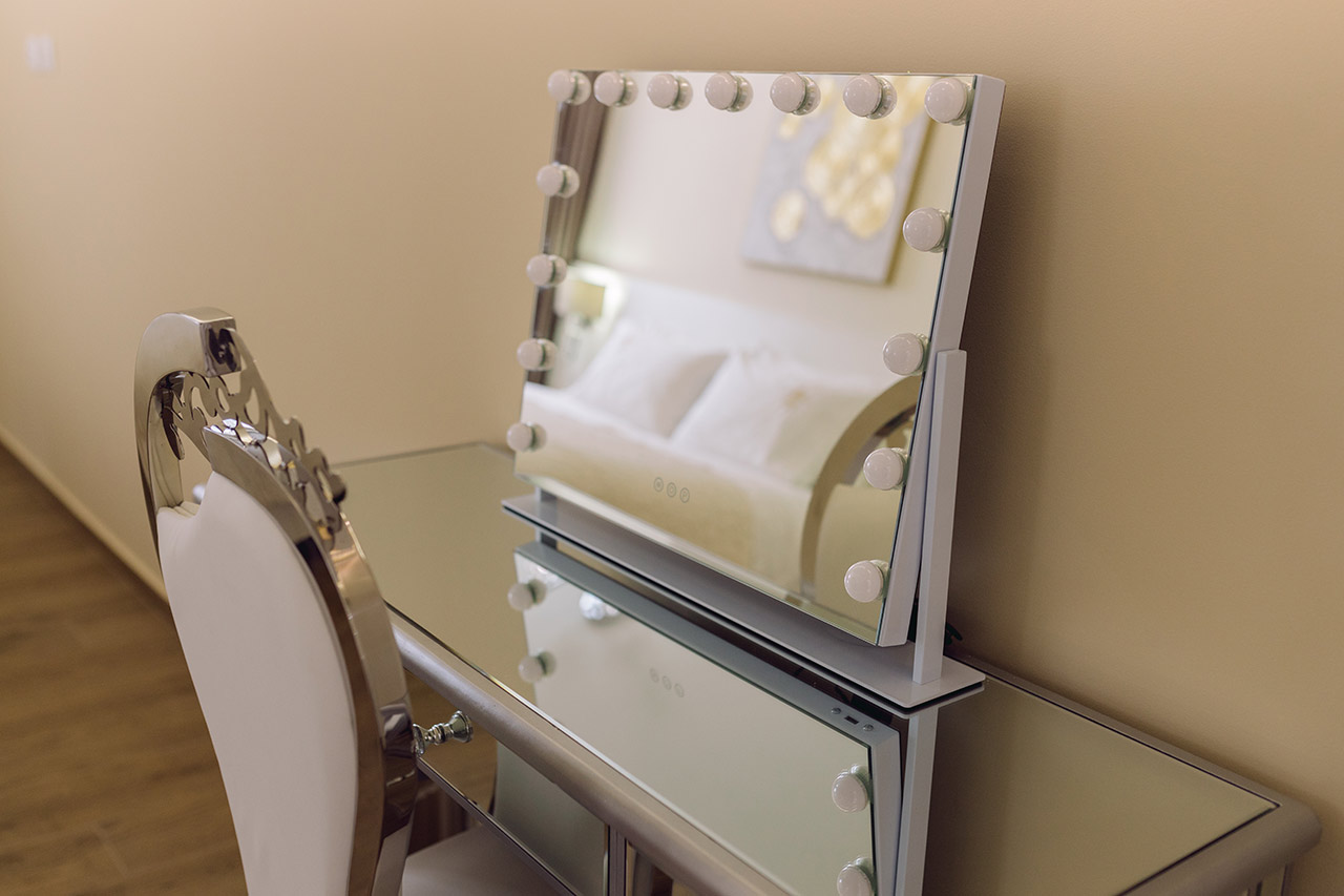 На втором этаже двухуровневой квартиры находится главная спальня, которая спроектирована с уважением к отдыху гостей. Кровать оснащена удобным матрасом и прикроватными светильниками от Laura Ashley. Высококачественное белье из 100% хлопка-сатина от Guy Laroche.